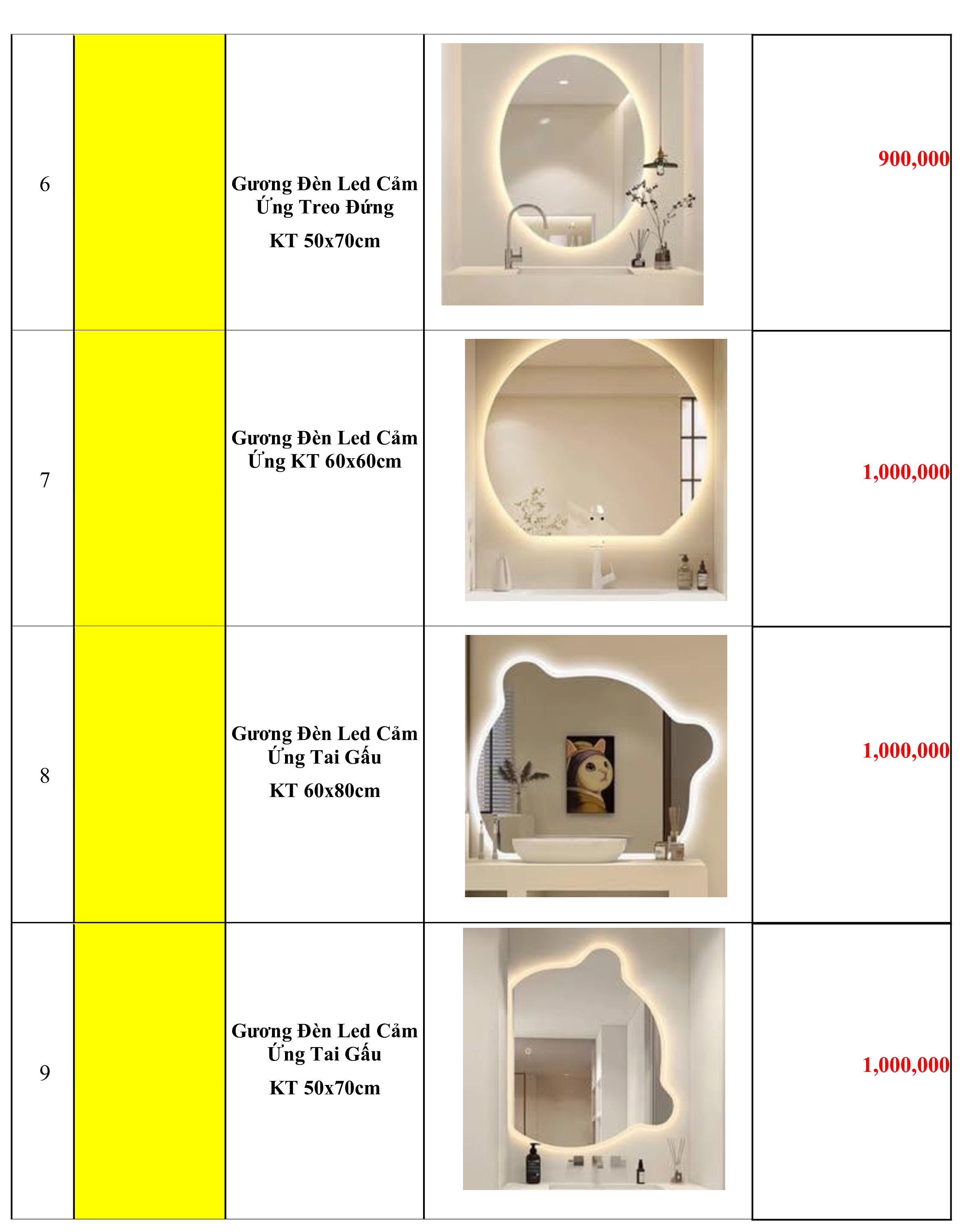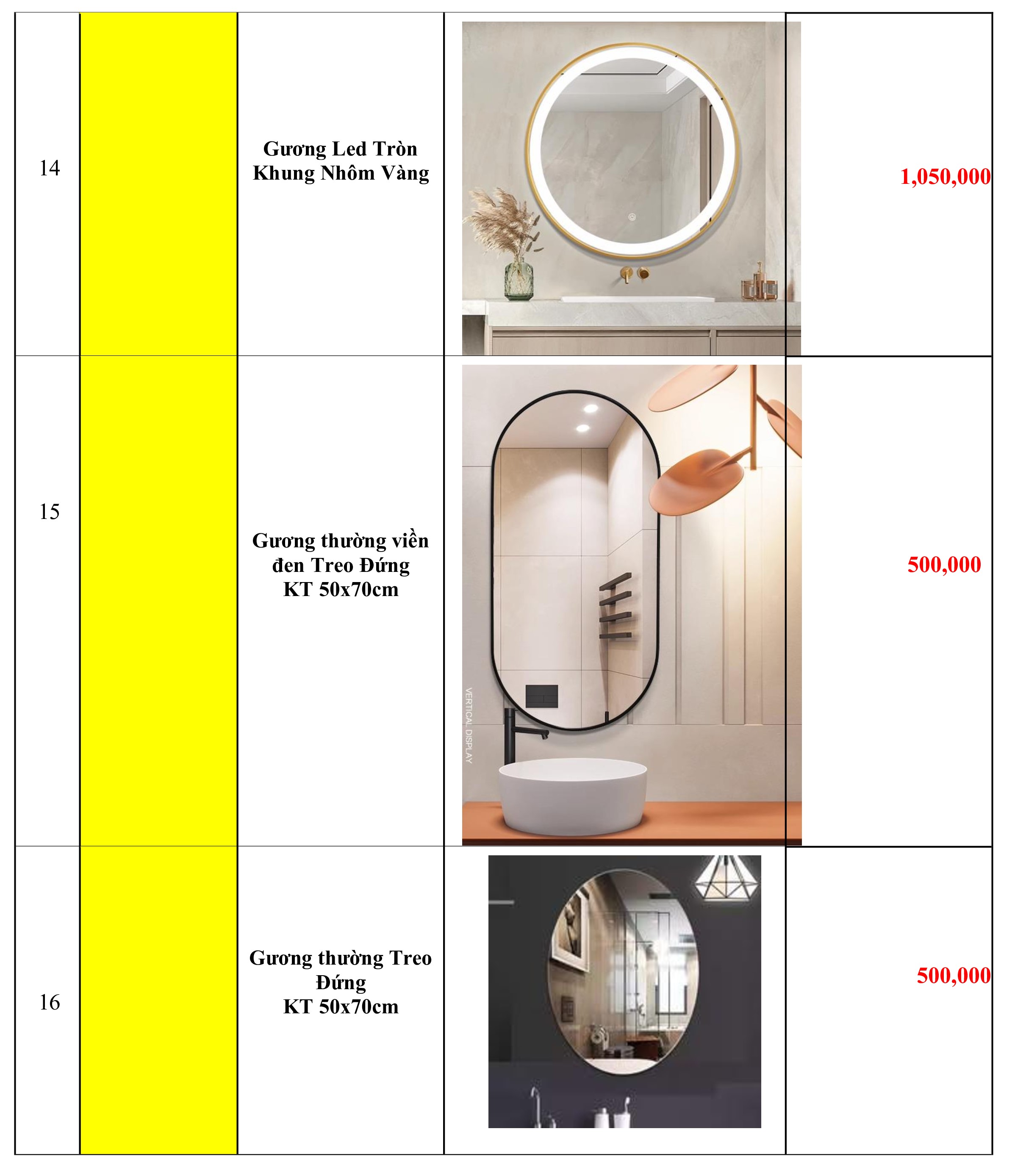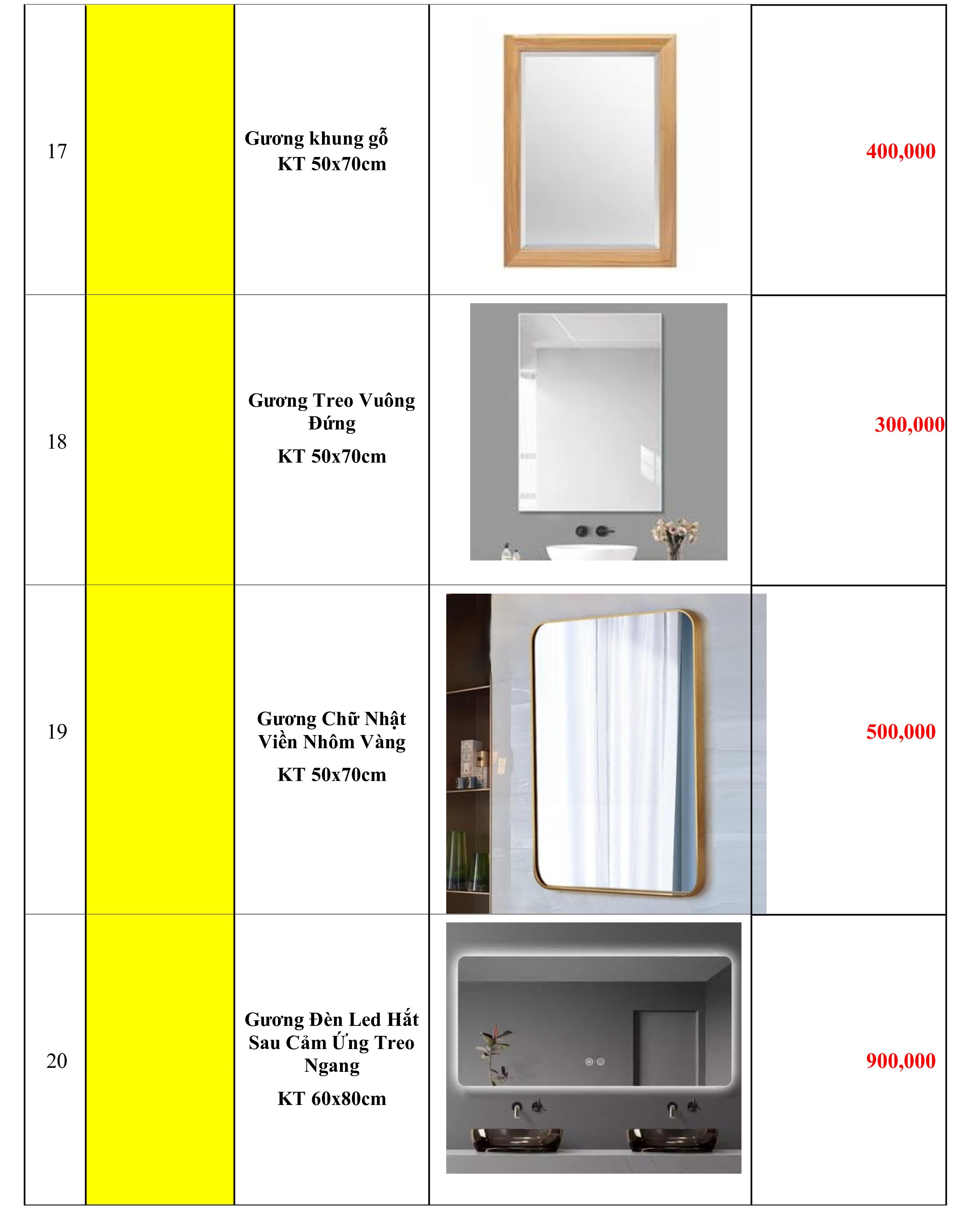 2. Bảng Báo Giá Gương Soi