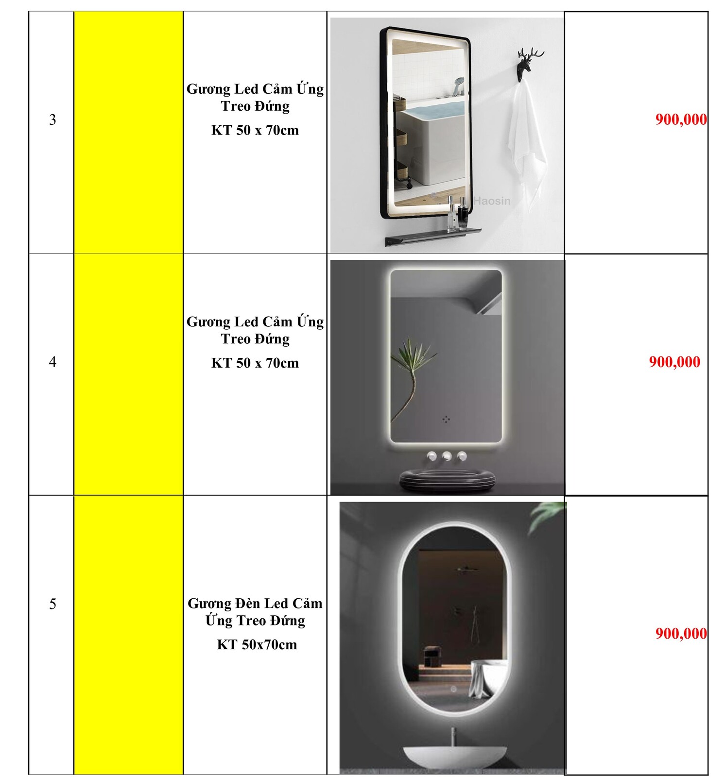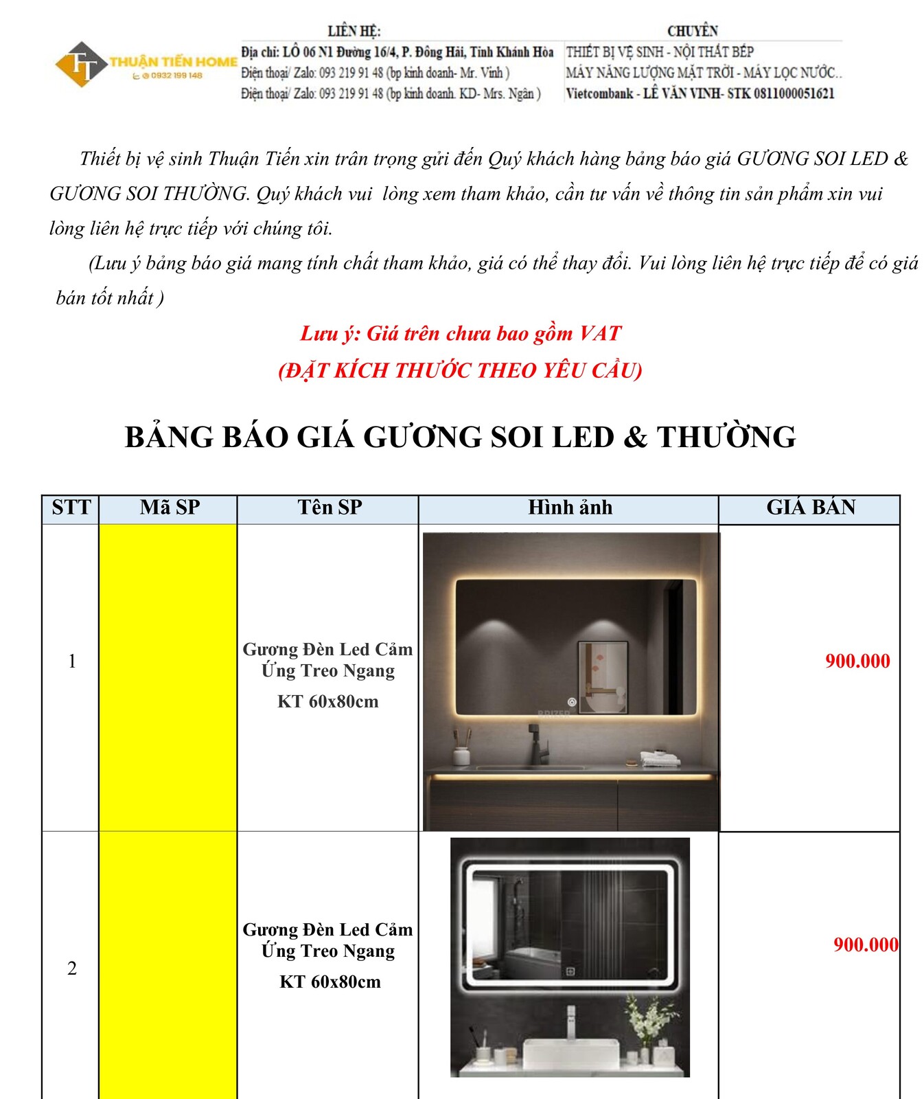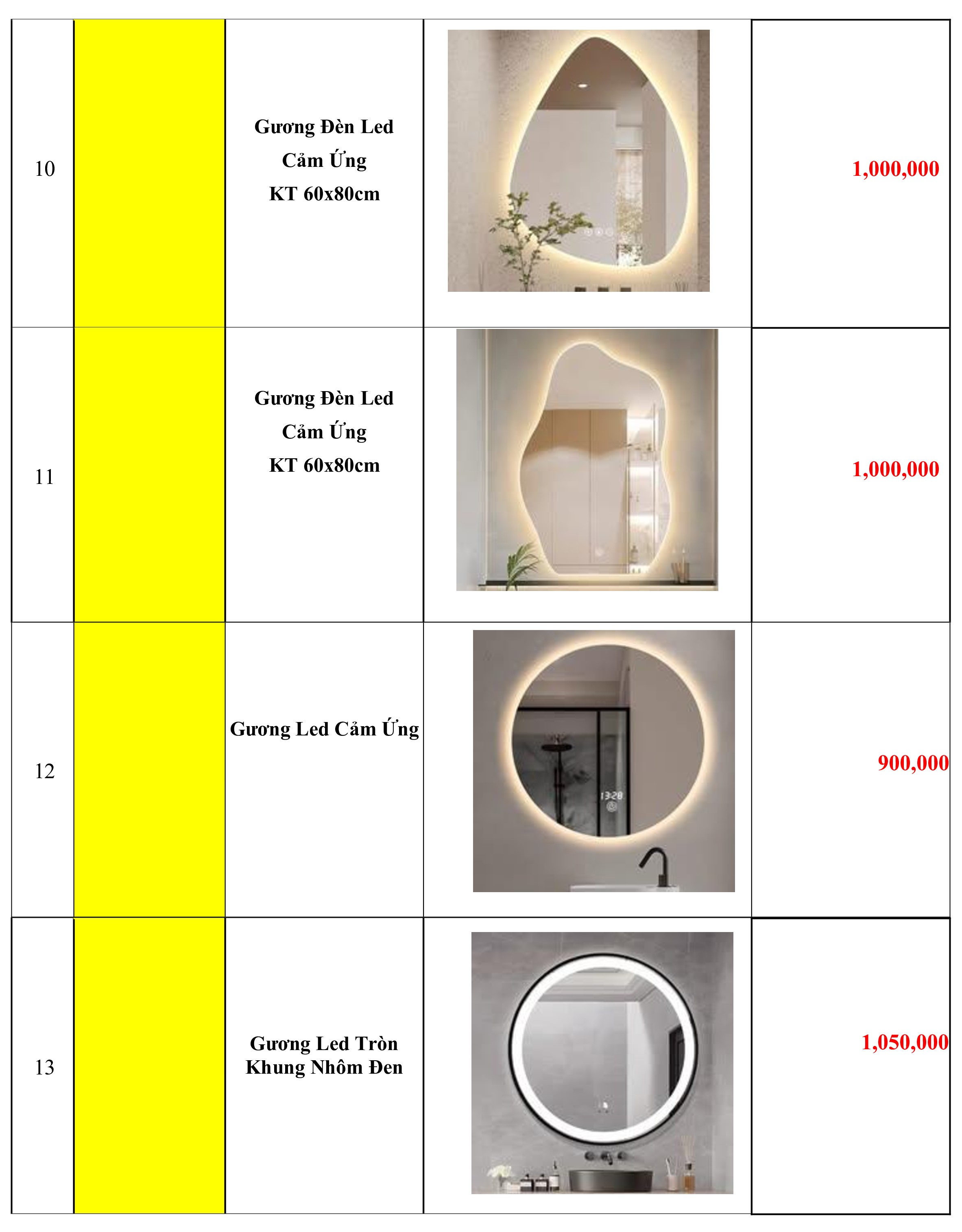 2. Bảng Báo Giá Gương Soi