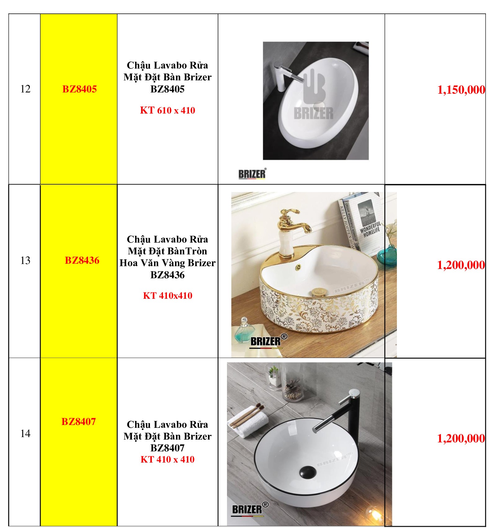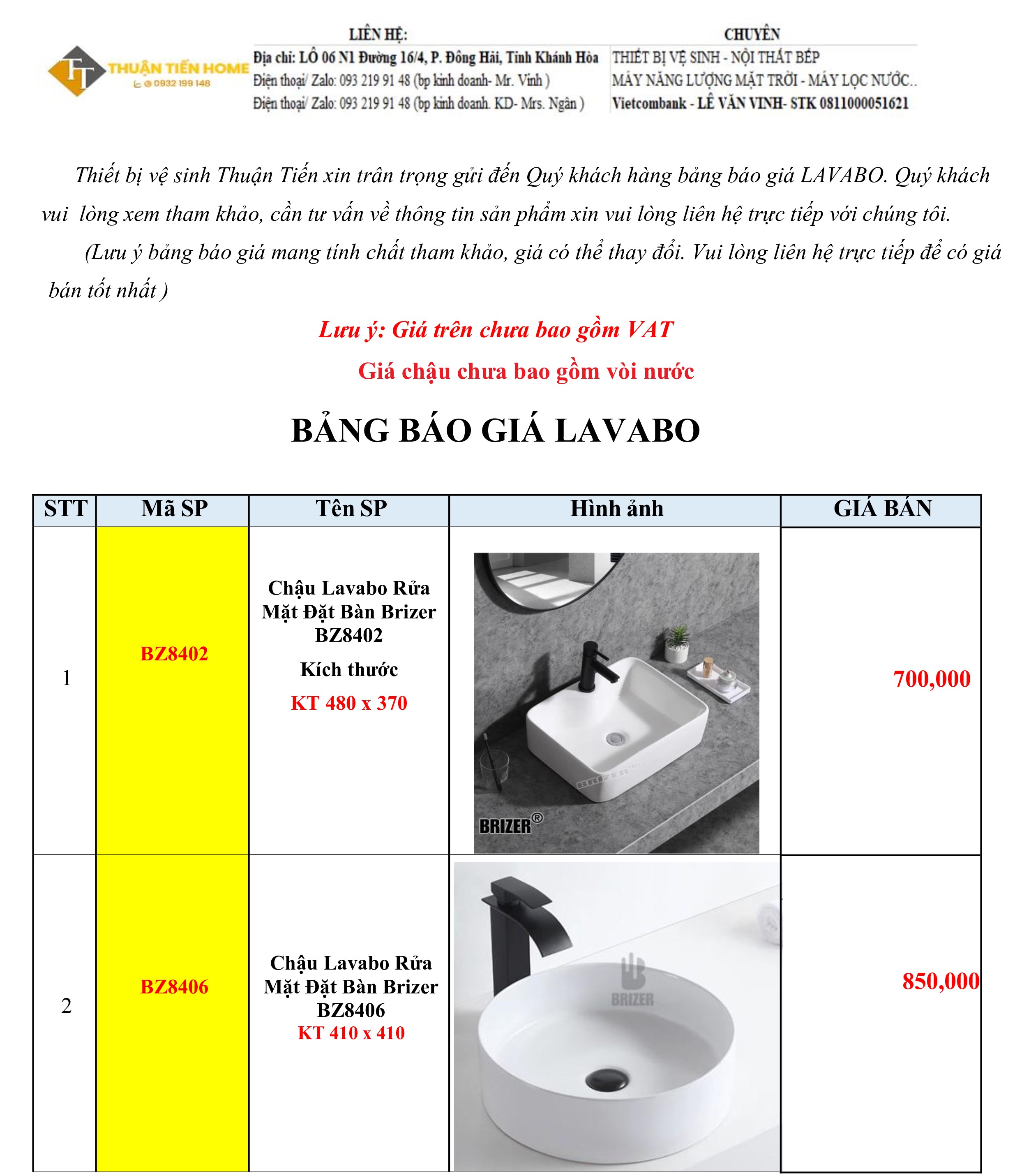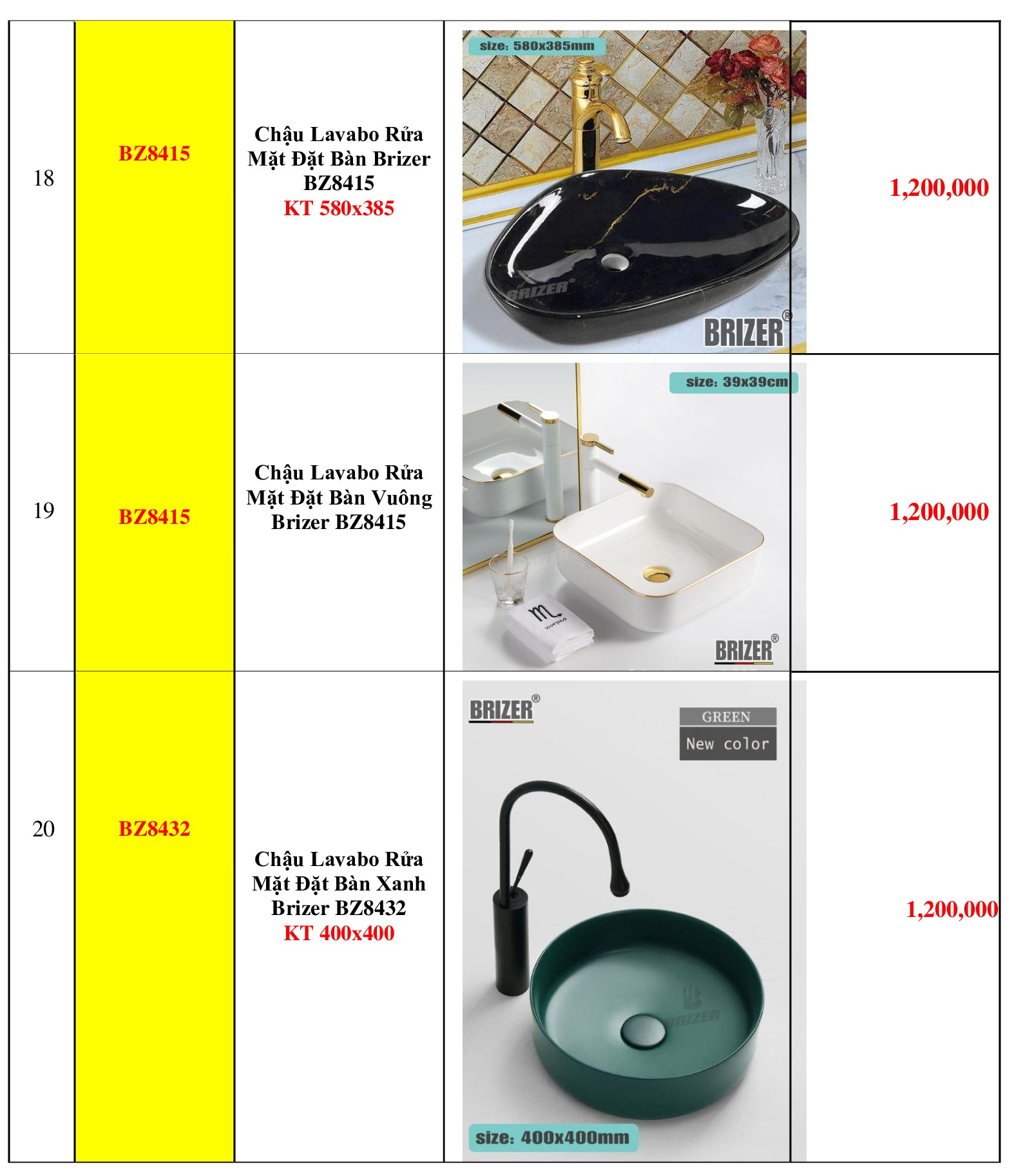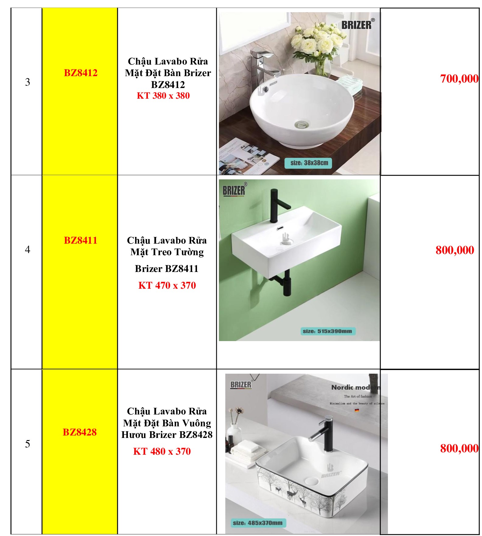 • Bảng Báo Giá Vòi Lavabo- Rửa Chén