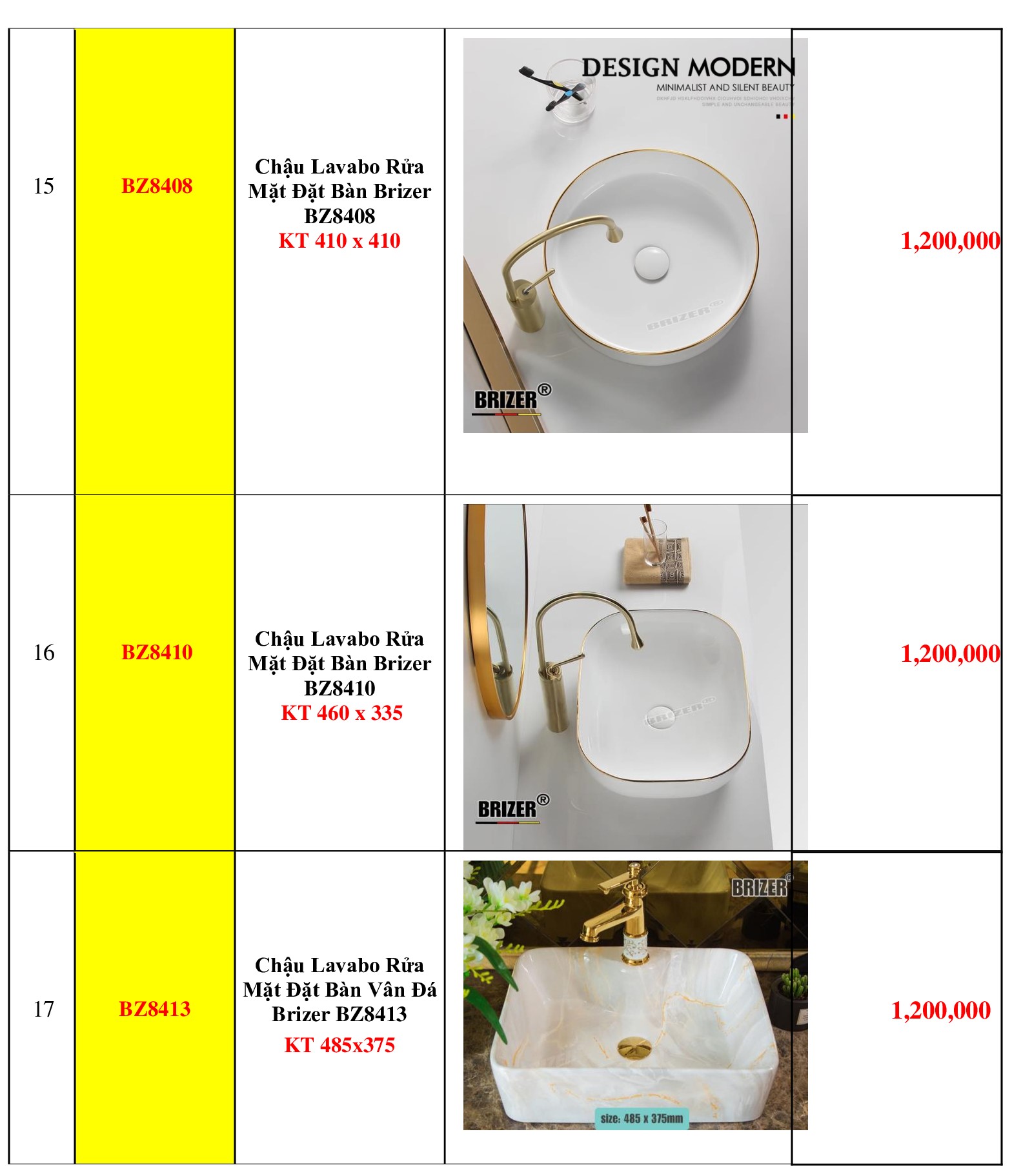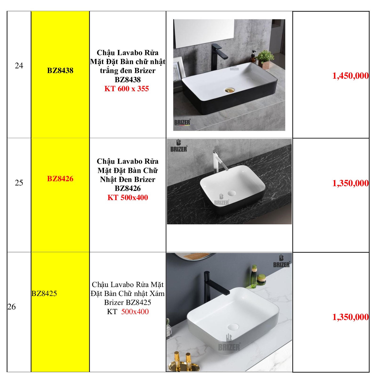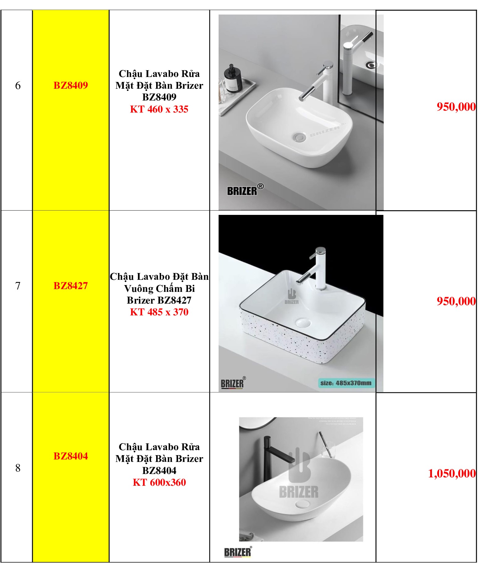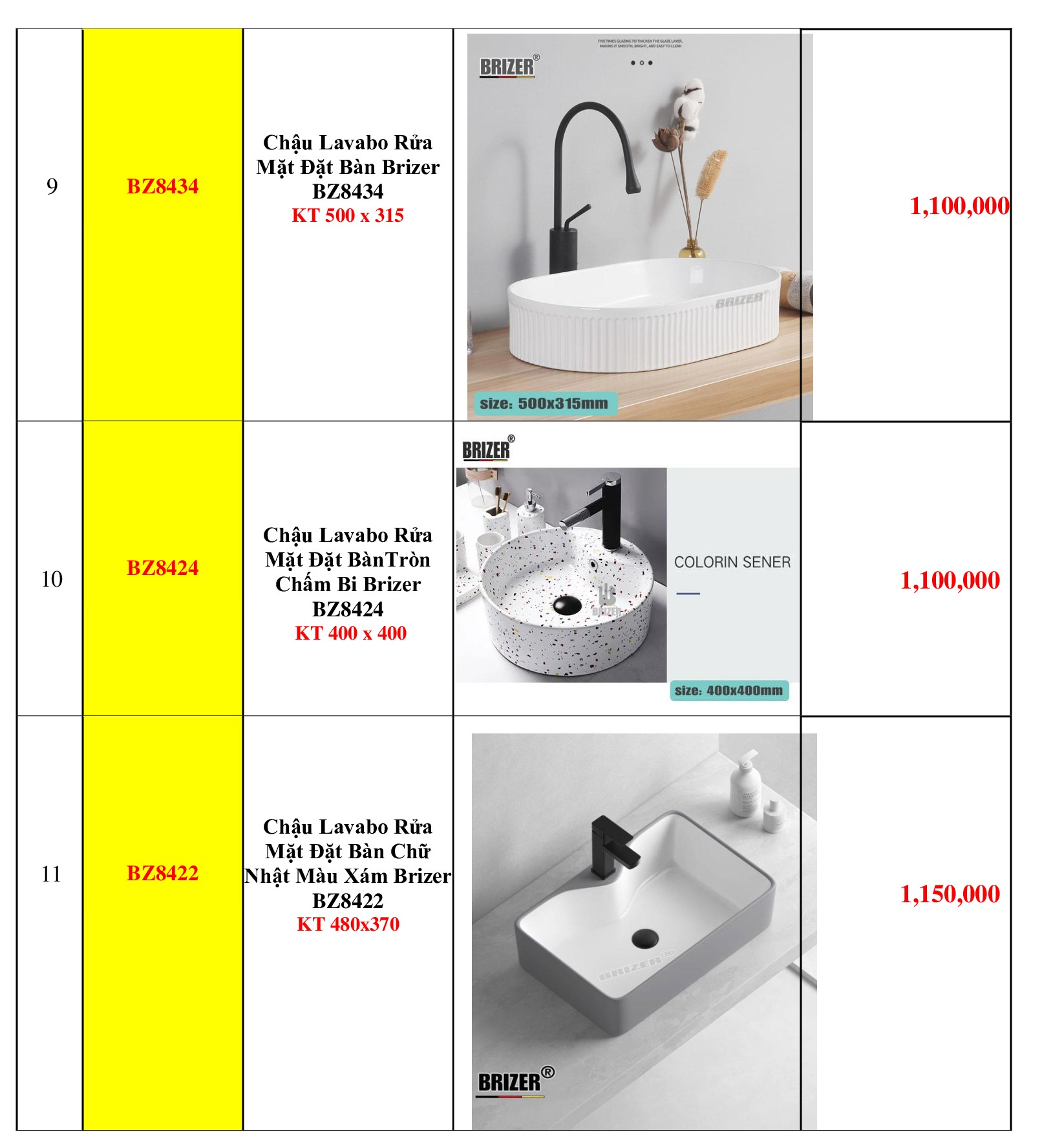 • Bảng Báo Giá Vòi Lavabo- Rửa Chén